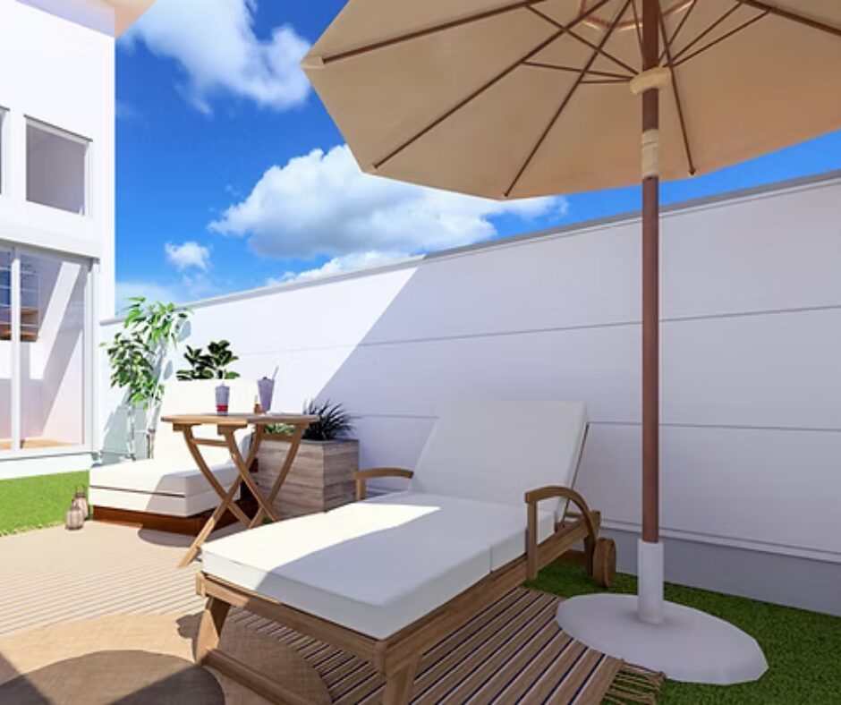 空の広がりを感じながら、心地よい風と光に包まれる贅沢な空間です。
