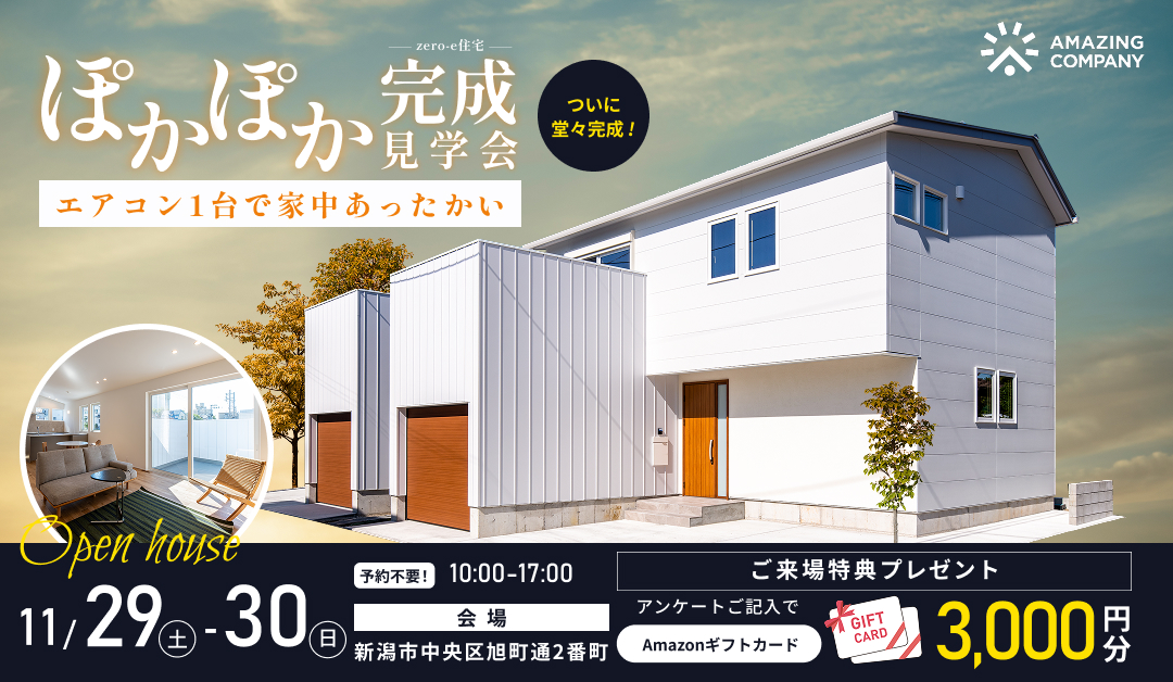![11/29(土)~11/30(日) [ 新築 ] ガレージとアウトドアリビングがある家 Zero-e住宅 ぽかぽか完成見学会|新潟市中央区旭町通2番町【終了】](https://www.amazing-company.jp/cnt/wp-content/uploads/2025/11/asahimachi_1080-1080-1.jpg)
