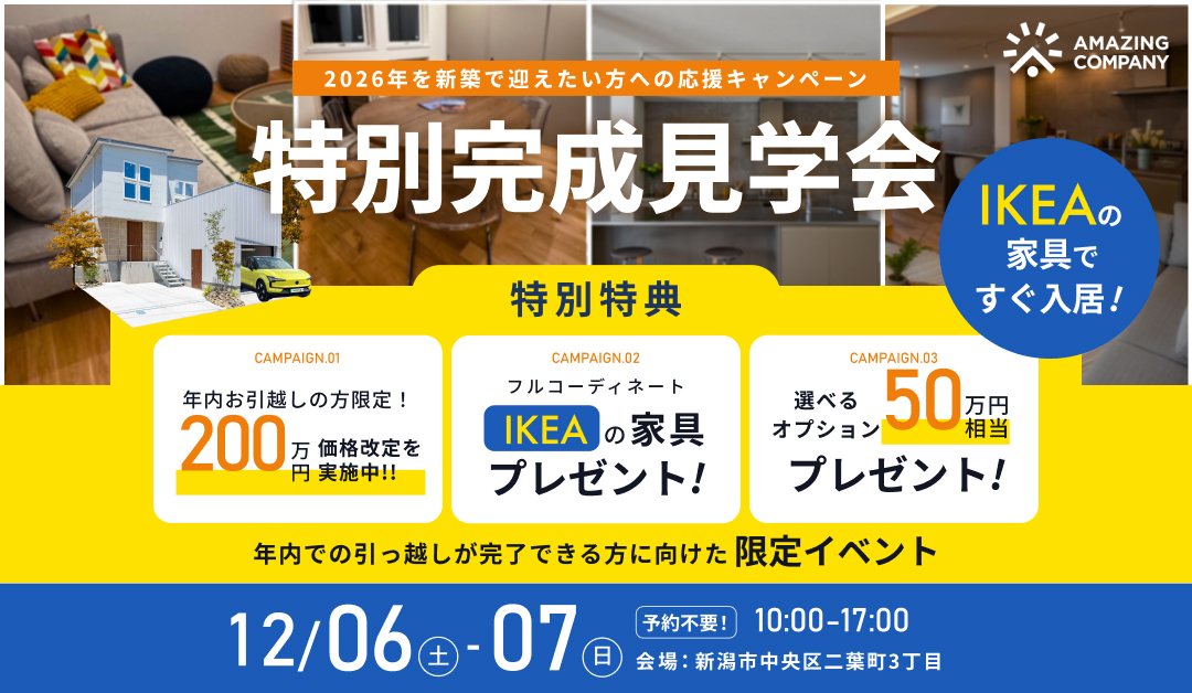 12/06(土)~07(日) IKEAの家具で、すぐ入居! 特別完成見学会|新潟市中央区二葉町【受付中】