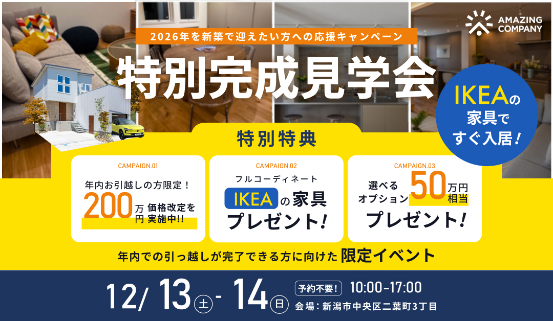 12/13(土)~14(日) IKEAの家具で、すぐ入居! 特別完成見学会|新潟市中央区二葉町【終了】