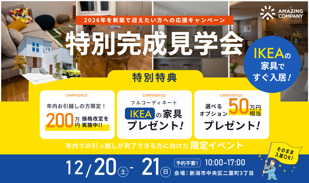 12/20(土)~21(日) IKEAの家具で、すぐ入居! 特別完成見学会|新潟市中央区二葉町【受付中】