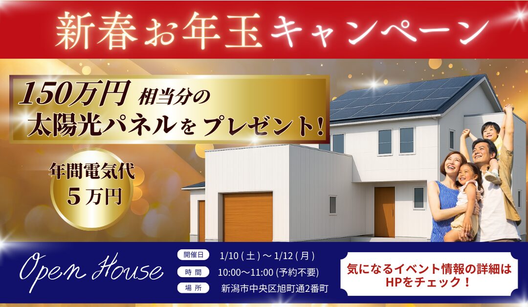 1/10(土)~1/12(月) 新春お年玉キャンペーン OPEN HOUSE|新潟市中央区旭町通2番町【受付中】