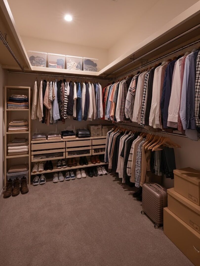 必要な場所に、必要な分だけの収納を配置する「適材適所の収納設計」は、無理に片付けようとしなくても自然と家が整う仕組み。