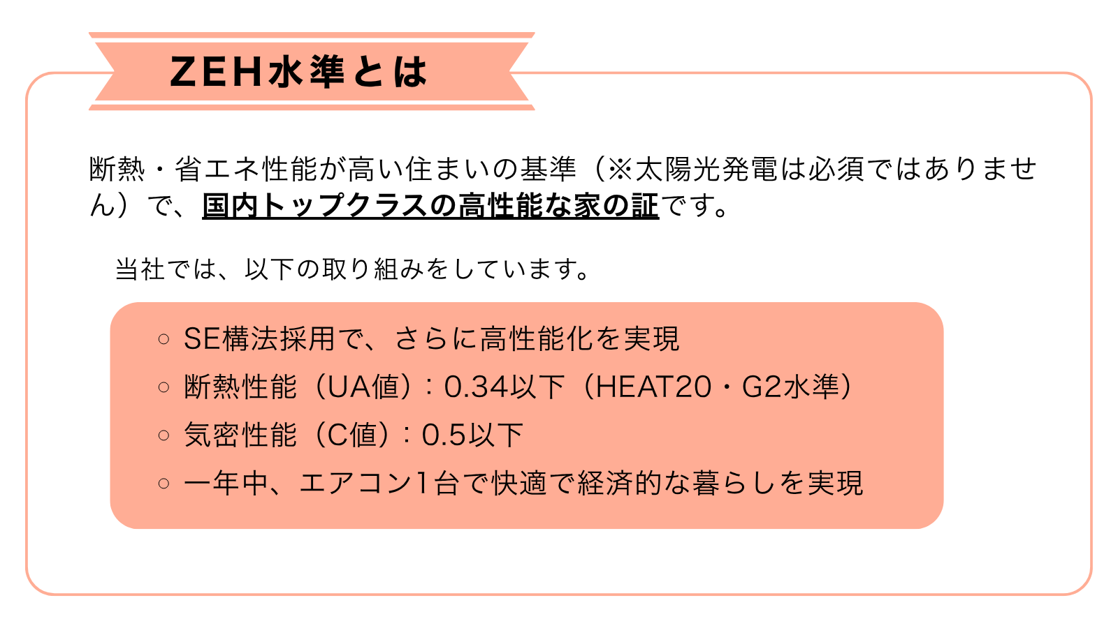 この住まいの核となるのは、高断熱・省エネ性能に優れた「Zero-e」住宅(ZEH水準※以上)です。