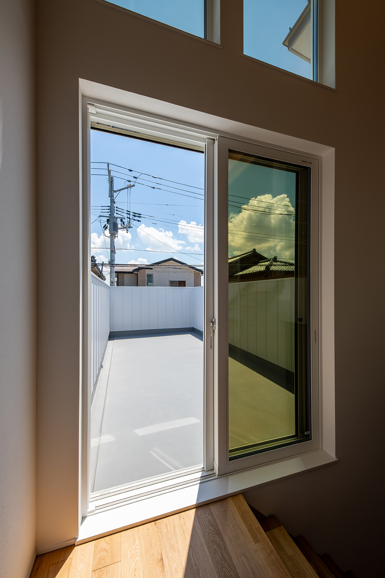 リビングとシームレスにつながる開放感あふれるテラスは、まるで〝スカイリビング”。