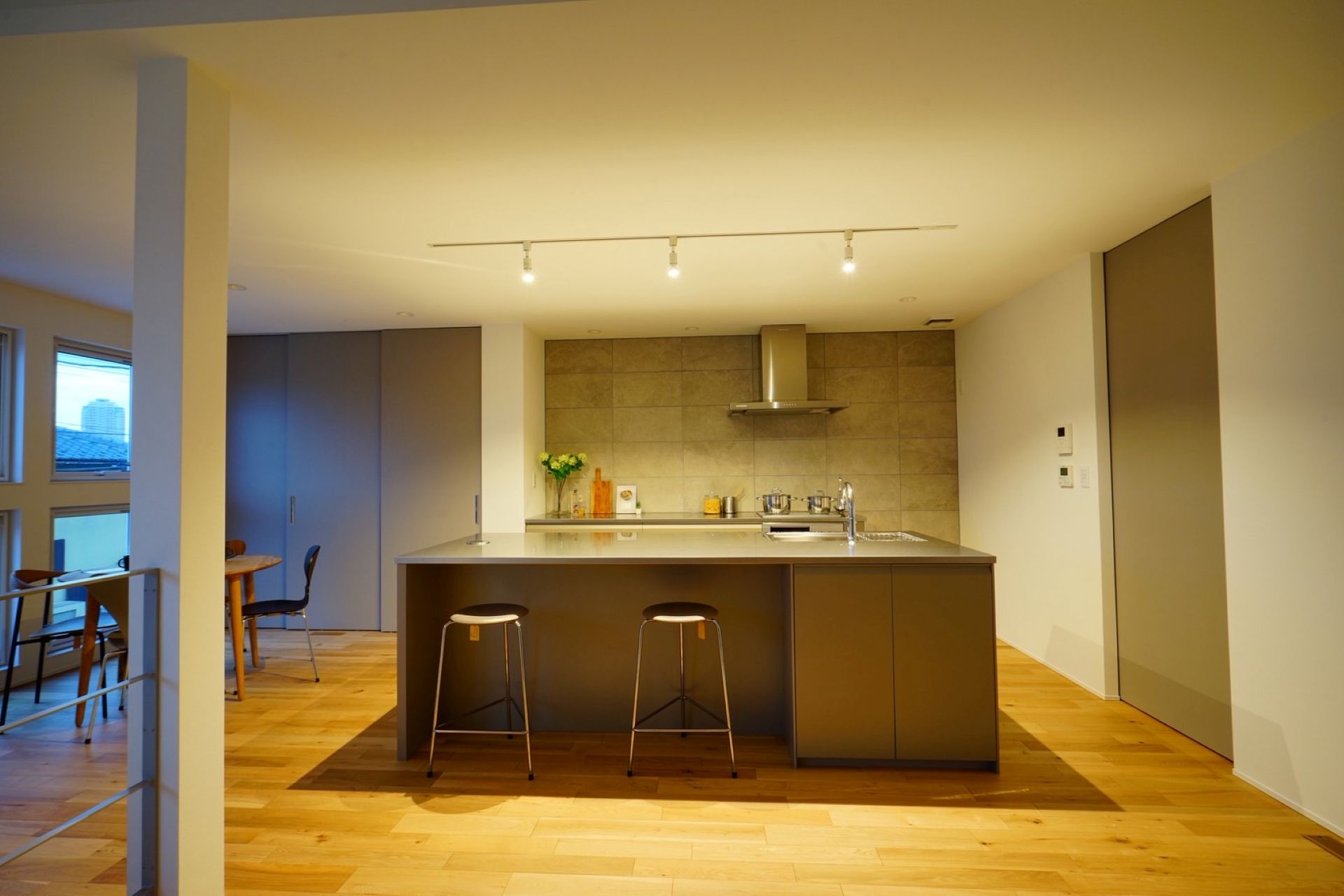 デザイン性と機能性を両立させたキッチンは、日常の料理はもちろん、友人や家族を招いて楽しむパーティー会場へと早変わり。